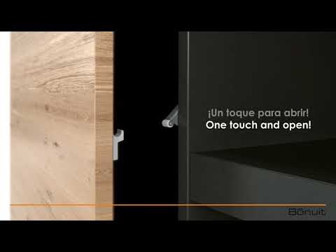 Dispositivo push to open con enganche uña, utilizado especialmente en muebles con bisagras sin presión y bisagras push to open, materiales Acero-plástico. Ideal para ejercer mediante presion la apertura y sujeción de la puerta