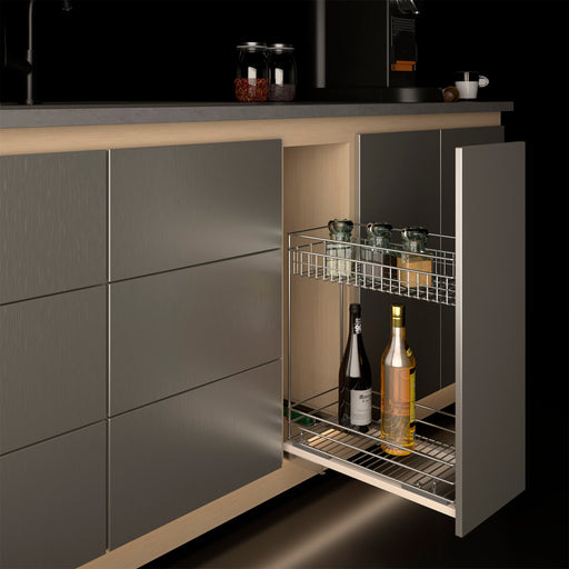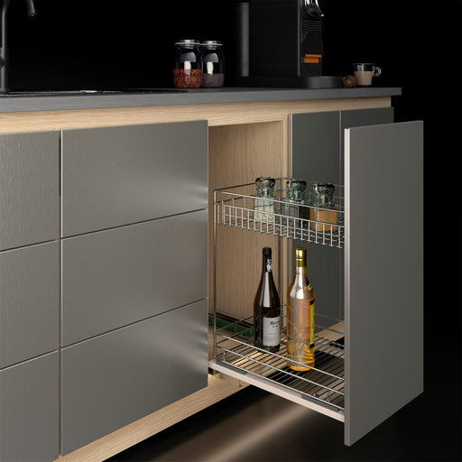 Bonuiten stockCanasta multiusos de dos niveles con rieles de cierre lento, ideal para módulos de 300 mm en cocinas. Fabricada en acero cromado resistente, soport...