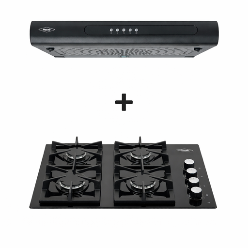 Combo Cubierta cristal de 60x43 a gas natural + Campana Tofu color negro de 3 velocidades marca Haceb