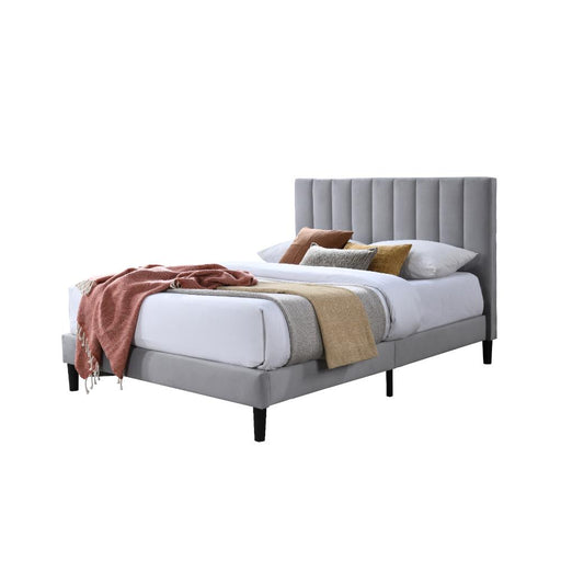 Cama Doble Lisa, Gris Claro, Madera roble tapizada