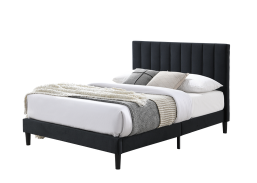 Cama Doble Lisa, Negro, Madera roble tapizada
