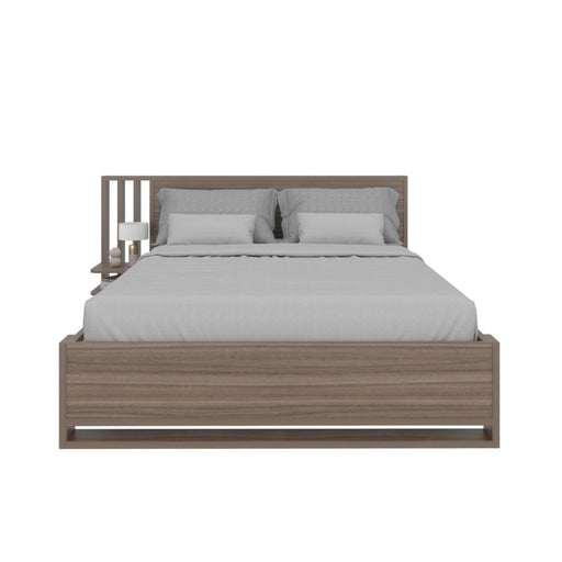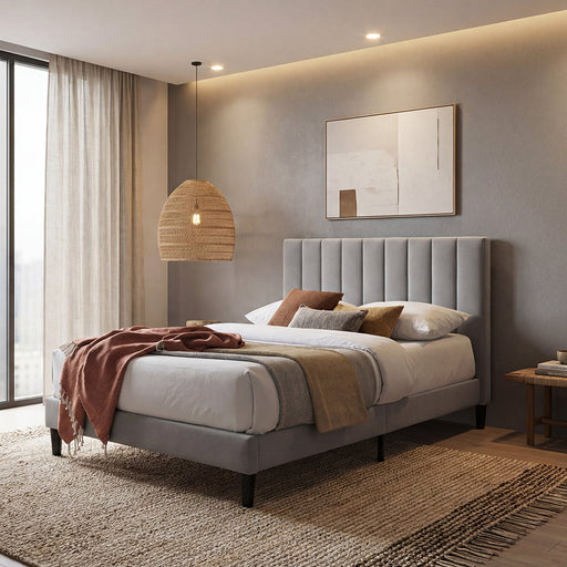 Cama Doble Vertex, Gris Claro, Madera roble tapizada