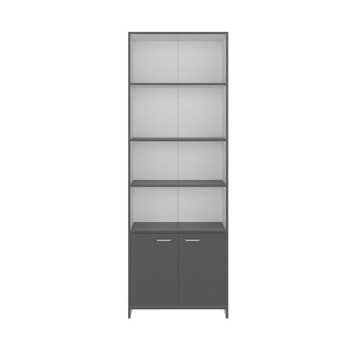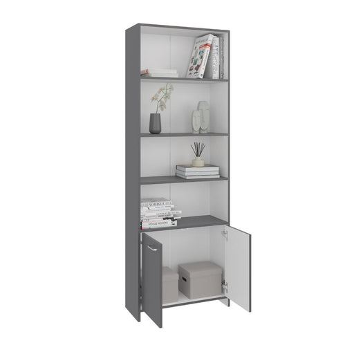 Biblioteca Milán, Plata Oscuro y Blanco, con Dos Puertas Abatibles y Cuatro Entrepaños