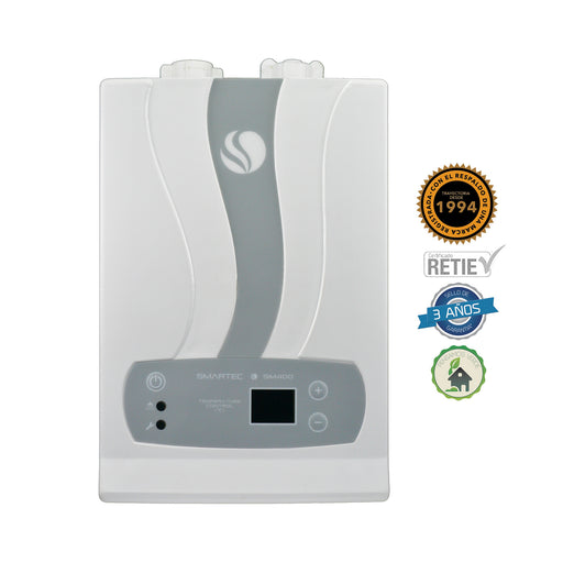 Smartecen stockEl SM400 es un calentador eléctrico de conexión bifásica, diseñado para abastecer hasta ½ puntos de agua caliente de manera simultánea. Incorpora c...