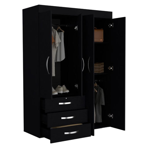Ver todos los detallesCloset Houston, Fresno Europeo y Wengue, Con Tres Puertas Batientes y Dos Cajones Con Amplio Espacio De Almacenamiento