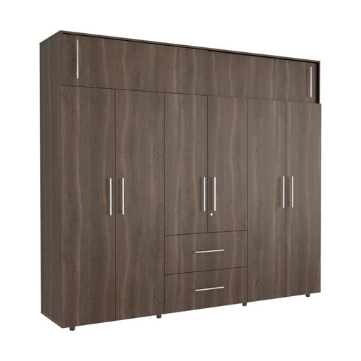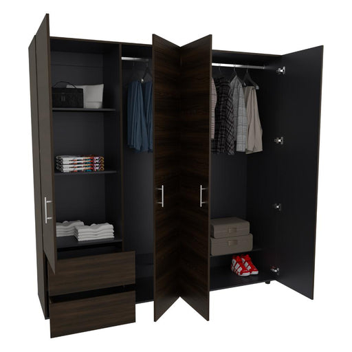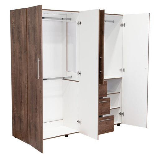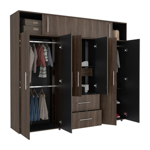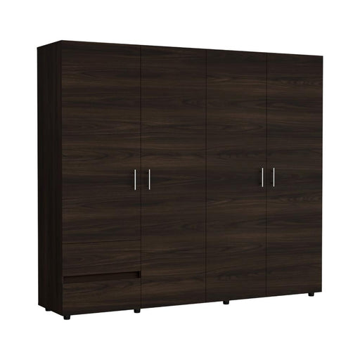 Closet Light 230, Nogal y Wengue, con dos cajones y cuatro puertas