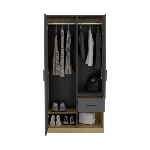 Closet Giroa, Plata Oscuro y Fresno Europeo, con dos puertas abatibles