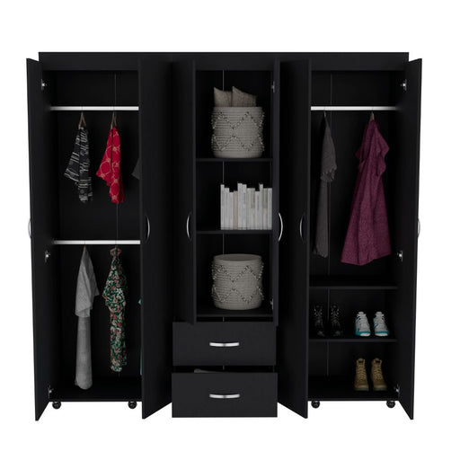 Closet Portátil Jeasn, Negro, Entrepaños en Tela