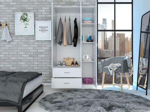 Closet América, Blanco, con Dos Cajones y Variedad de Entrepaños