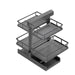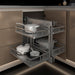 Canasta esquina mágica derecha e izquierda gris antracita es una esquinera para cocina con cierre suave. Fabricada en acero con acabado gris antracita en pintura electrostática, cuenta con 4 bandejas extraíbles que maximizan el espacio en módulos de esquina. Soporta 5 kg por canasta, funciona para puertas izquierda o derecha (mínimo 45 cm) y ofrece acceso total y cómodo a utensilios.