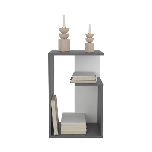 Mesa Auxiliar Evert, Piedra y Blanco Duqueza, con diseño moderno y espacio para ubicar objetos