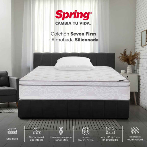 Combo colchón spring seven firm doble 140x190 cm + set almohada siliconada