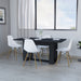 La mesa del comedor está elaborada en madera aglomerada MDP, recubierta con láminas melamínicas de excelente calidad en color Wengué. Con capacidad para cuatro puestos, esta mesa amplia ofrece una superficie cómoda para disfrutar de comidas especiales en familia.