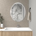Espejo Ovalado Zahara, Gris, con Líneas Curvas En Samdblasting