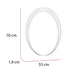 Espejo ovalado con líneas curvas en samdblasting, y ensamble a la pared con chaflan. Incluye herrajes para su instalación.
