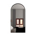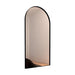 Espejo rectangular con el extremo superior curvo y en estructura metálica ensamble a pared con chaflan. Incluye herrajes para su instalación