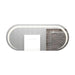 Espejo rectangular con extremos laterales en semicirculo, con diseño en sandblasting, con luz led, ensamble a la pared con chaflan. Incluye herrajes para su instalación.