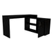 Escritorio en L, cuenta con amplia superficie de trabajo y el eje de lateral tiene amplios entrepaños para ubicar libros u otros elementos de trabajo y estudio, y un práctico espacio con puerta para almacenar múltiples objetos. Ideal para el hogar o la oficina, incluye manual para ensamble.