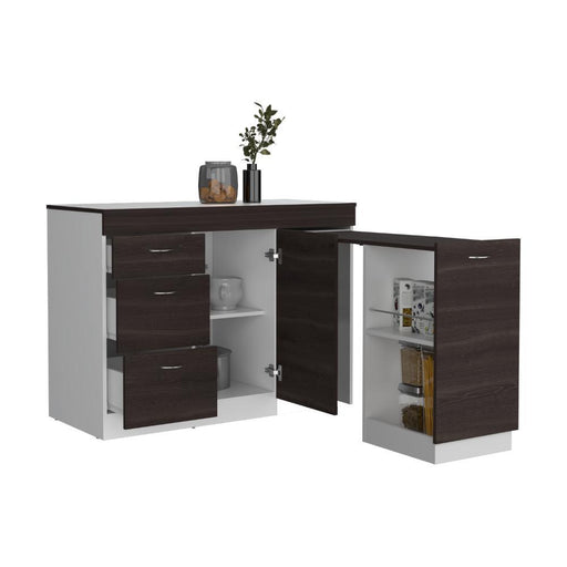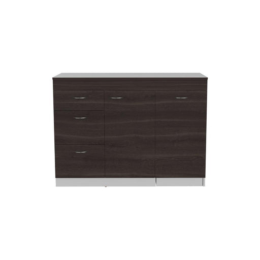 Gabinete Inferior Stella, Wengue, con Dos Puertas Batientes y Tres Cajones Deslizables, con Mesón Izquierdo