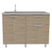 Gabinete Inferior, con 1 cajón, variedad de entrepaños, 4 puertas batientes, y, patas metálicas Incluye mesón