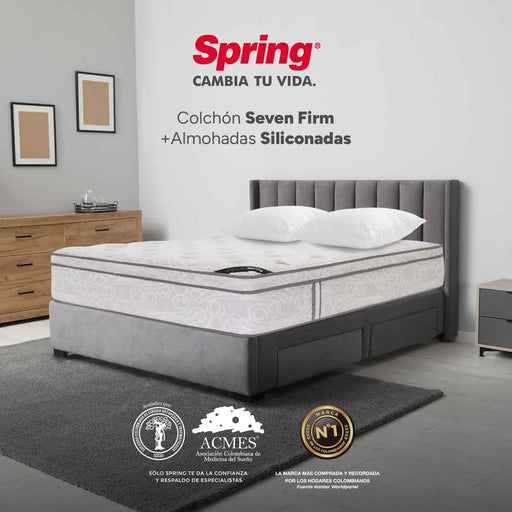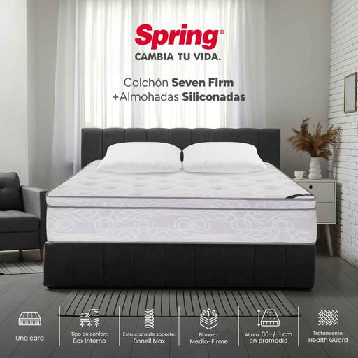 Combo colchón spring seven firm queen 160x190 cm + set almohada siliconada