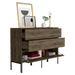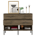Organizador, doble con diseño moderno, una puerta abatible, dos cajones y base metalica.