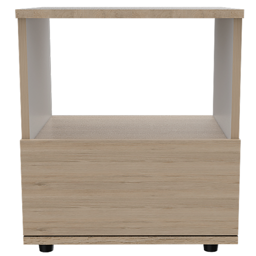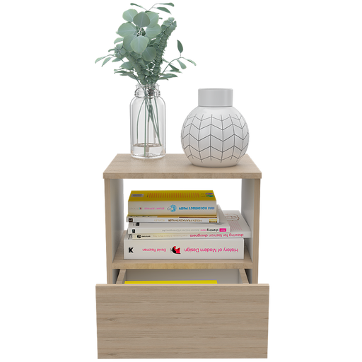 Mesa de noche nebrask, miel y blanco, con un cajón organizador x2