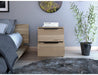 Mesa de Noche x 2 unidades, con diseño contemporáneo, contiene dos cajones e incluye manual de ensamble.
