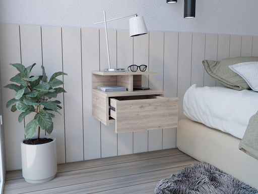 Virtual Mueblesen stockMesa de Noche Flotante, con un cajón, diseño moderno, y division de dos entrepañosElaborado en Madera aglomerada MDP, recubierta con láminas melamí...