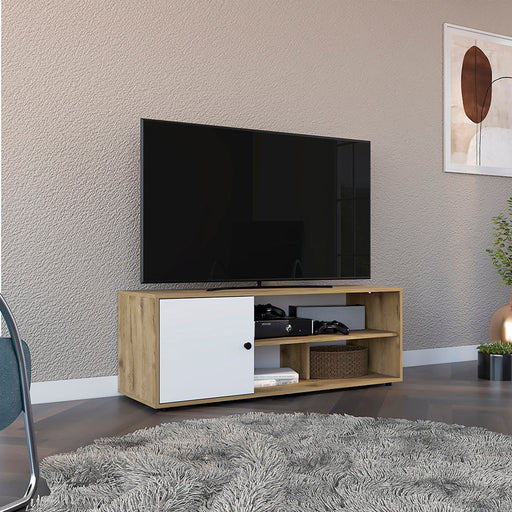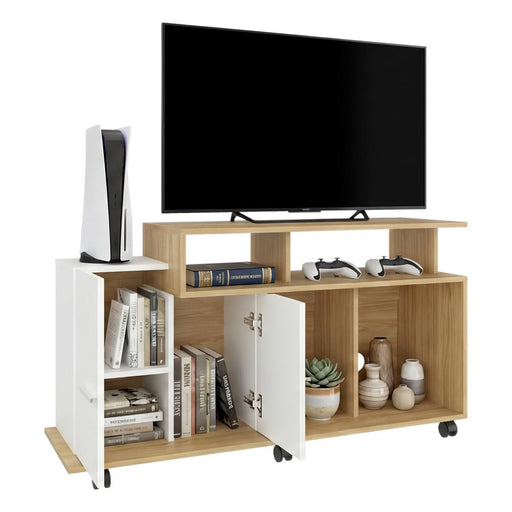 Mesa Para Tv Navi, Avellana y Blanco Duqueza, Para Televisor Hasta 55 Pulgadas