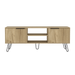 Mesa de TV, de 65'' maximo, con dos puertas apertura manija, patas metalicas negras, diseño moderno, soporta 51kg.