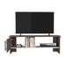 Mesa para TV de 55". cuenta con un entrepaño y dos compartimentos para almacenar objetos. Puede servir para tv desde 55" hasta 65" dependiendo de la base del Televisor.Elaborado en Madera aglomerada MDP, recubierta con láminas melamínicas de excelente calidad, en color Milan y Blanco Duqueza.Sus medidas son:Alto: 42 cmAncho: 120,3 cmFondo: 31,1 cm