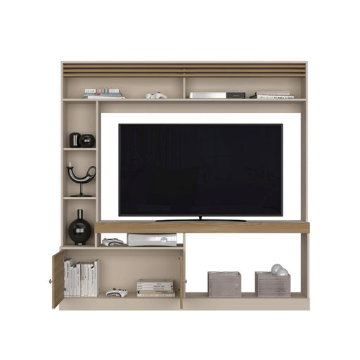 Mesa para tv doha, café claro, con variedad de entrepaños