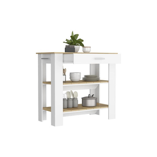 Barra de Cocina Mirlin, Blanco y Macadamia, con diseño moderno de fácil armado