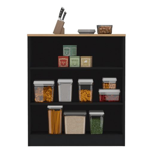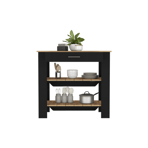 Barra de Cocina Mayer, Wengue y Macadamia, con tres entrepaños para ubicar vasos y frascos