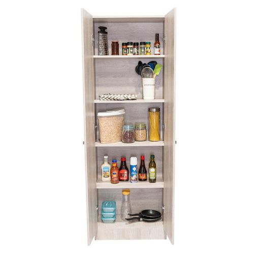 Alacena Multiusos Varese, Bardolino y Blanco Vainilla, Posee Un Estante Adicional En La Puerta y Cuatro Entrepaños
