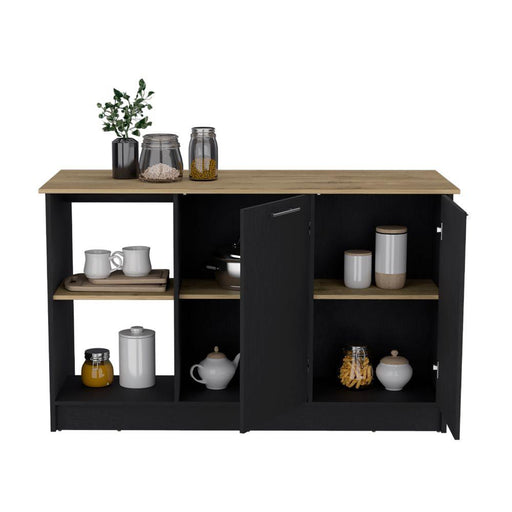 Barra de Cocina Eris, Café Claro y Wengue, con Dos Puertas Batientes