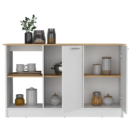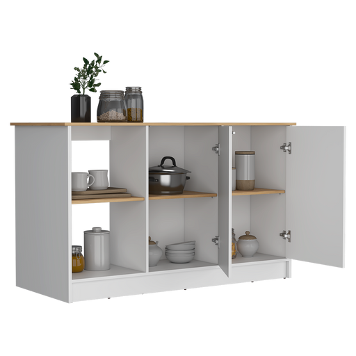 Barra de Cocina Samara, Blanco y Macadamia, con Tres Entrepaños