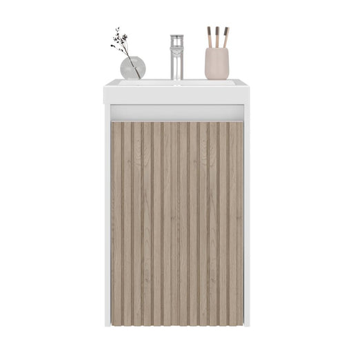 Mueble De Lavamanos Syra, Kronos Blanco Duqueza y Roble Natural, Con textura ranurada incluye lavamanos ZF