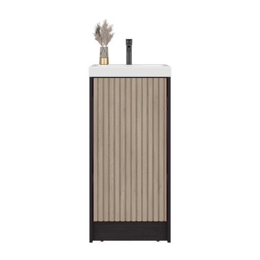 Mueble De Lavamanos Syra, Kronos Wengue y Roble Natural, Con textura ranurada incluye lavamanos ZF