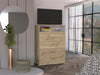 Elaborado en Madera aglomerada MDP, recubierta con láminas melamínicas de excelente calidad, en color Café Claro y Blanco.