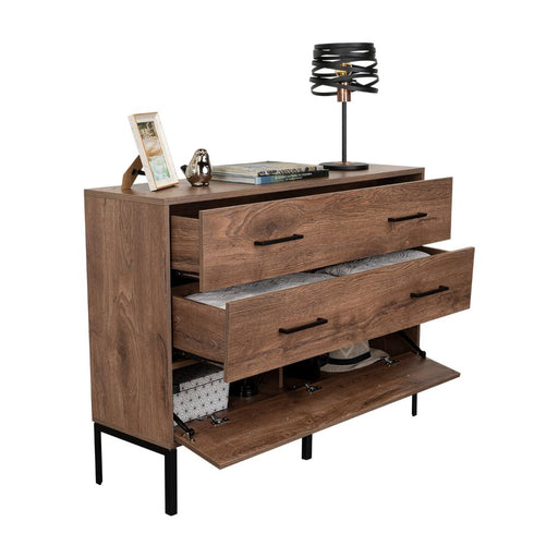 Organizador Doble Sory, Nogal, con Dos Cajones y Una Puerta Abatible