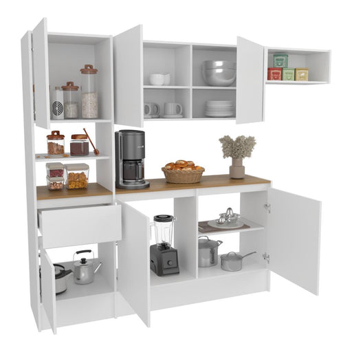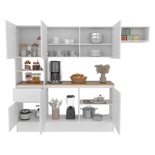 Alacena Wiston, Kronos Blanco, Seis puertas abatibles y un cajón con amplio espacio de almacenamiento ZF