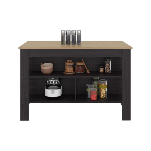 Barra de Cocina Burton, Blanco Duqueza y Cocoa, con amplia superficie en la mesa