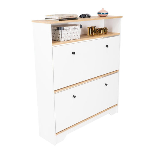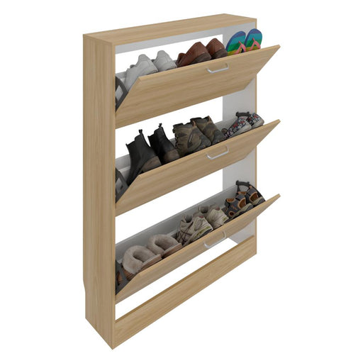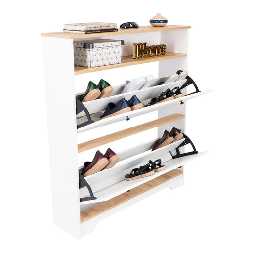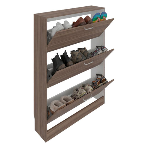 Ver todos los detallesZapatero Merlín, Avellana y Blanco, con Tres Puertas Abatibles con Manijas Metálicas