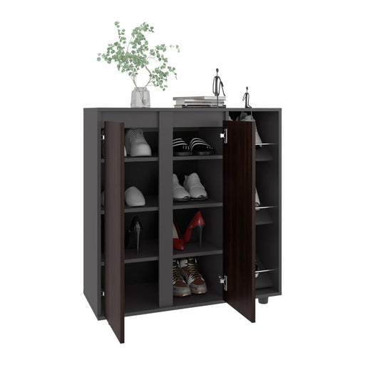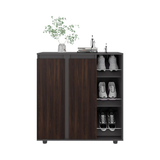 Ver todos los detallesZapatero Houck, Plata Oscuro y Nogal, con gran espacio para organizar zapatos