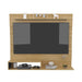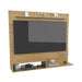 Panel de TV, con espacio para televisor de hasta 70” máximo, diseño moderno, y múltiples entrepaños y superficies para ubicar objetos.