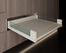 Cajón costado metálico recto slim box bajo (63mm) con vidrio, permite mantener organizado y a la vista el contenido del cajón, con ajuste tridimensional (arriba, abajo, izquierda, derecha), ideal para alacenas, muebles de baño, centros de entretenimiento y clóset. Incluye: Dos laterales metálicos con vidrio, dos enganches frontales con vidrio, dos tapas embellecedoras, y un manual de instalación.