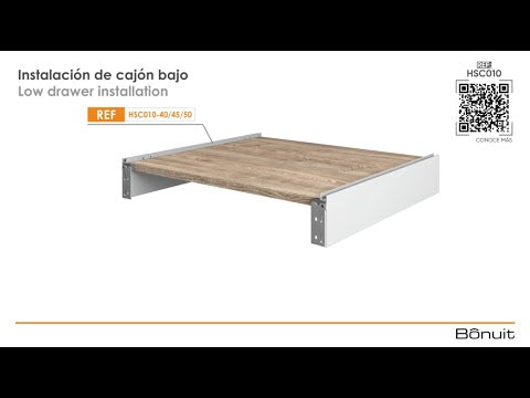 Para instalación con rieles de montaje bajo Bonuit, cierre lento y push to open integrado HRE710, cierre lento HRE790 y push to open HRE780. No incluidos, se deben comprar por separado.