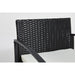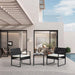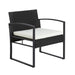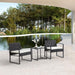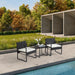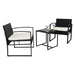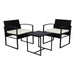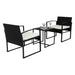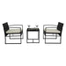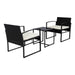 Juego de Sala Exterior, Elaborado en Plástico, Metal y Textil el set incluye mesa y dos sillas, en Color Negro y Blanco.
